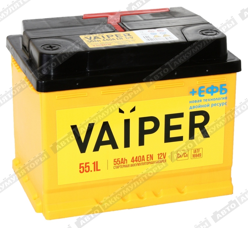 Легковой аккумулятор Vaiper 6СТ-55.1 L