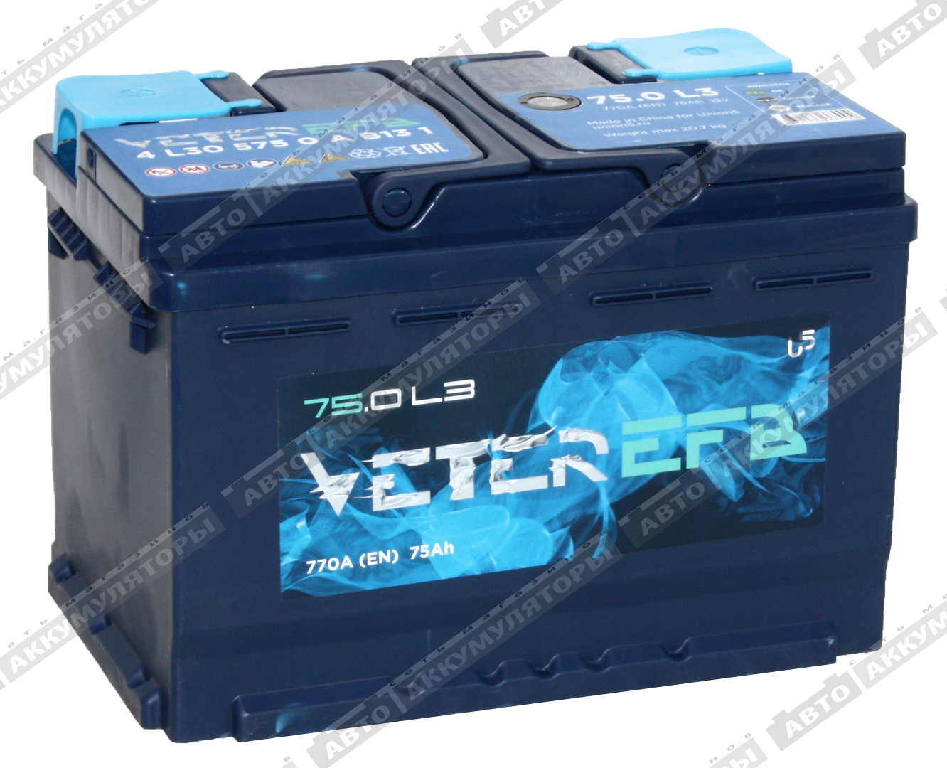 Легковой аккумулятор Veter NEW 75.0 EFB