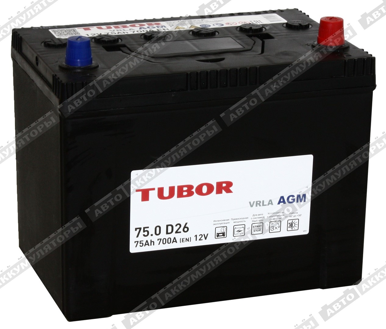 Легковой аккумулятор Tubor AGM 6СТ-75.0 VRLA (D26L)