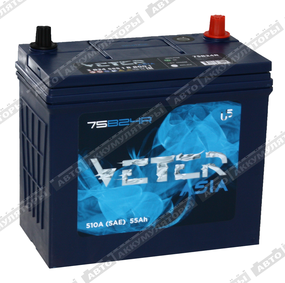 Легковой аккумулятор Veter NEW ASIA 6СТ-55.1 VL (75B24R)