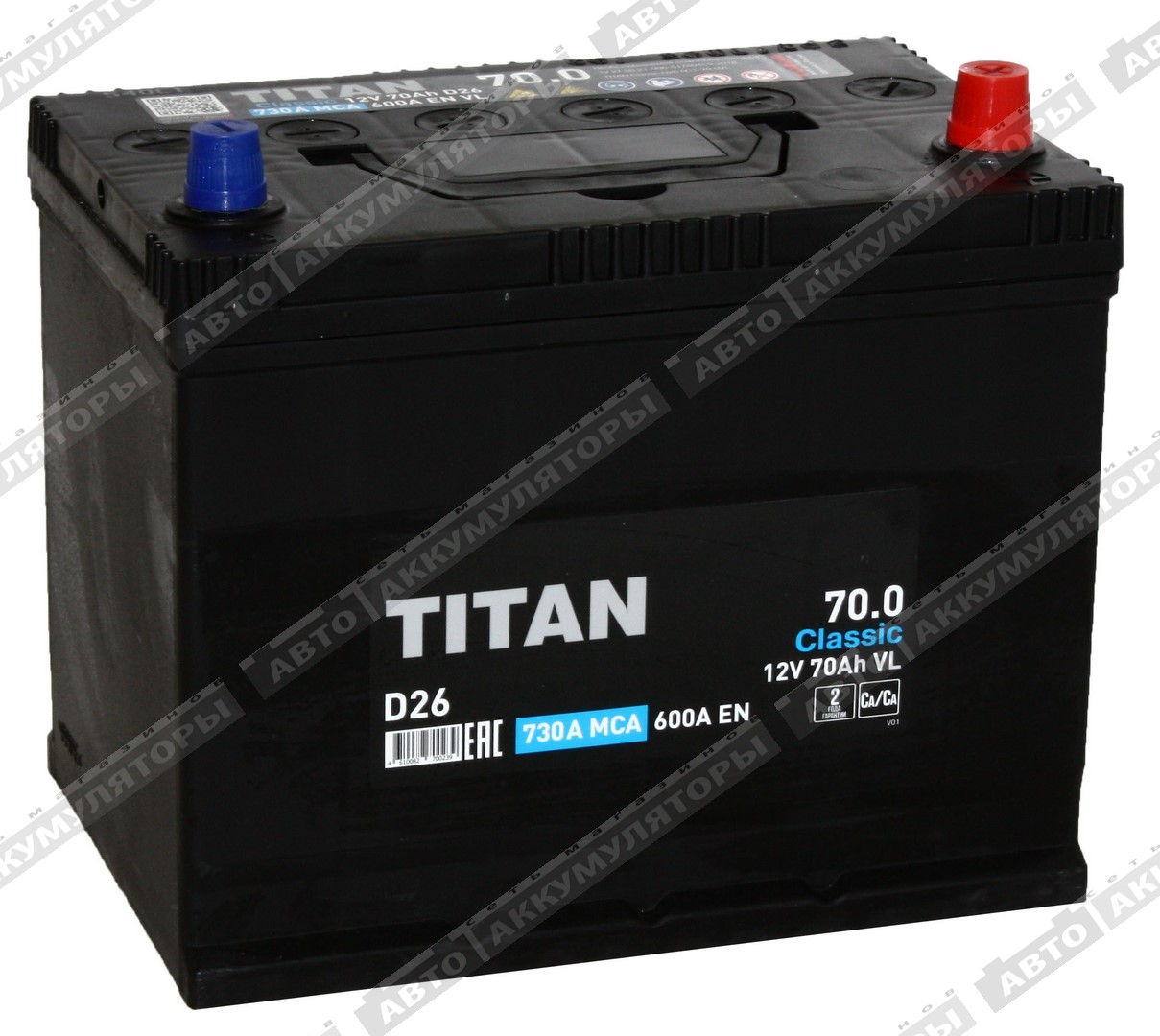 Аккумулятор Titan Classic 6СТ-70.0 VL (D26FL)