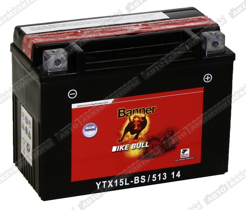 Энергия Banner для мотоциклов, квадроциклов/мотовездеходов, водных мотоциклов и газонокосилок-тракторов. Bike Bull AGM – это аккумуляторы с инновационной технологией AGM (AGM = Absorbent Glass Mat). Кислота абсорбируется в стекловолокне и тем самым связывается, что гарантирует защиту от утечки.