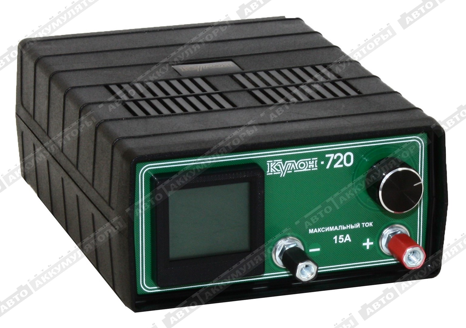 Зарядное устройство «Кулон-720» предназначено для заряда всех типов аккумуляторных батарей - щелочных, гелевых, AGM, WET, GEL напряжением 6 - 12 Вольт и емкостью 5 - 200 Ач, применяемых на автомобилях, мотоциклах, катерах и т. д.