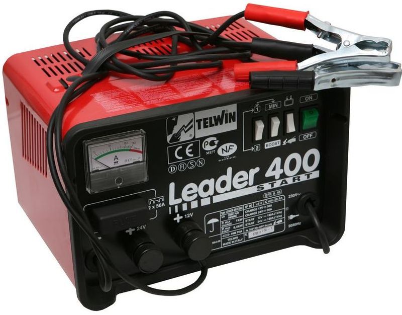 Пускозарядное устройство TelwinLEADER 400 START 230V 12-24V предназначено для зарядки аккумуляторов со свободным электролитом WET с напряжением 12/24В, а так же для запуска двигателя.Подходит для пуска всех типов транспортных средств с бензиновыми двигателями, а так же запуска дизельного двигателя до 70 л.с.