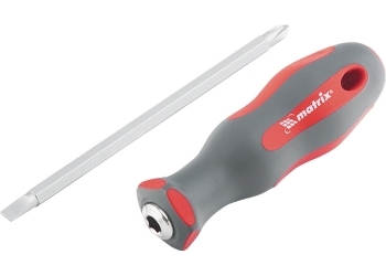 Комбинированная отвертка Matrix 12290, SL6,0 / PH2 мм, из стали CrV, с антискользящей двухкомпонентной рукояткой, за счет двухстороннего стержня позволяет производить монтаж/демонтаж резьбовых соединений сразу двух типов: Slotted и Phillips. Она станет незаменимым инструментом для строителей, монтажников, слесарей и частных мастеров. Благодаря длине стержня 150 мм отвертка легко достает до крепежа в углублениях.