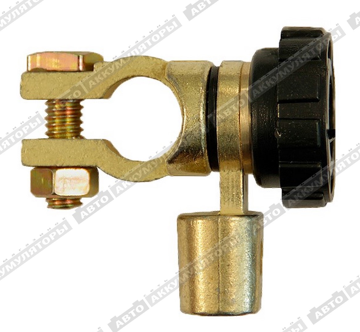 Описание: Изделие устанавливается между аккумулятором и штатной минусовой клеммой автомобиля. Выходная часть, расположенная перпендикулярно входной, свободно вращается вокруг своей оси и позволяет использовать клемму при затруднённом доступе к соединению . Включение "массы" осуществляется вручную поворотом ручки до упора.